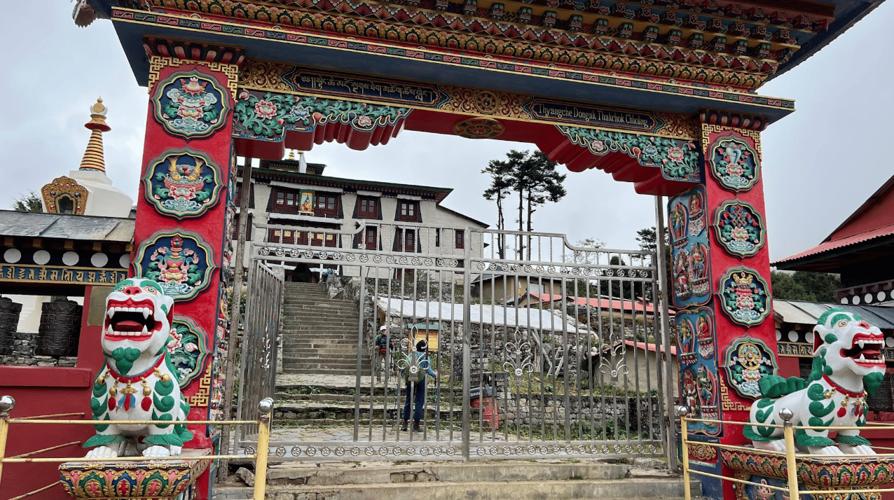 At Tengboche — a 350-year-old monastery situated at nearly 13,000 ft — we meditated in front of a colossal, two-story-tall, golden Buddha statue richly adorned.